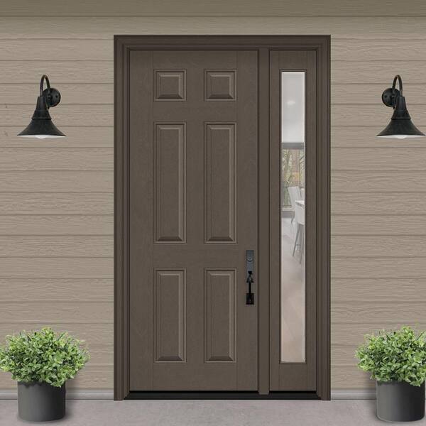 Regency 53 in. x 96 in. 6 Panel LHIS Ashwood Stain Mahogany Fiberglass Prehung Front Door w/Clear 14 in. SL 4-9/16