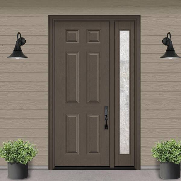 Regency 53 in. x 96 in. 6-Panel LHIS Ashwood Stain Mahogany Fiberglass Prehung Front Door w/ Rain 14 in. SL 4-9/16