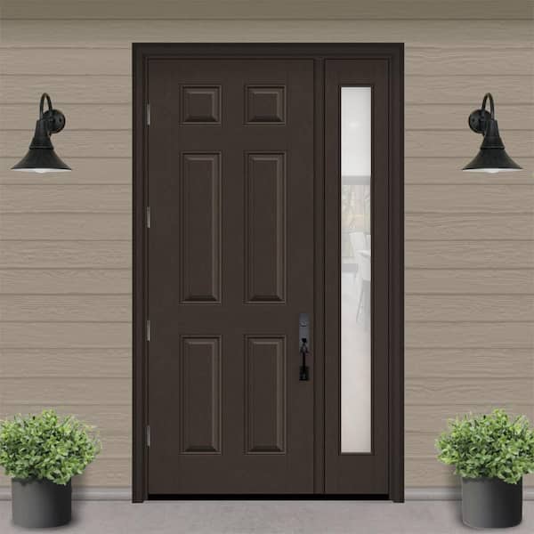 Regency 53 in. x 96 in. 6 Panel RHOS Hickory Stain Mahogany Fiberglass Prehung Front Door w/Obscure 14 in. SL 6-9/16