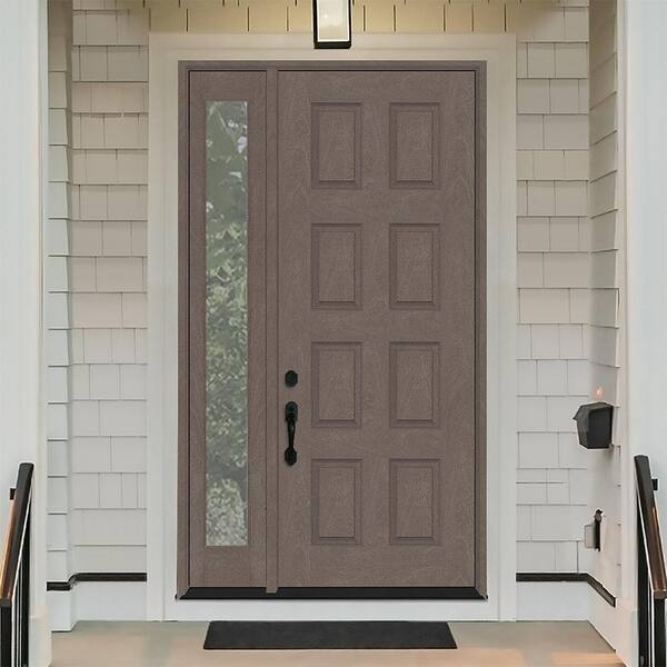 Regency 53 in. x 96 in. 8-Panel RHIS Ashwood Stain Mahogany Fiberglass Prehung Front Door w/14in.Sidelite