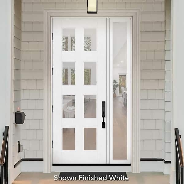 Regency 53 in. x 96 in. 8L Modern Clear Glass RHIS Unfinished Fiberglass Prehung Front Door with Clear 14 in. SL 4-9/16