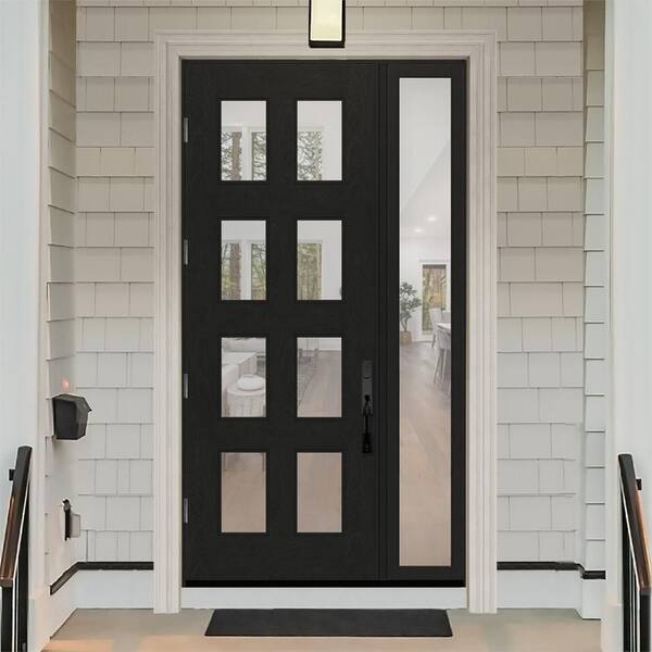 Regency 53 in. x 96 in. 8L Modern Clear Glass RHOS Onyx Stain Fiberglass Prehung Front Door with Clear 14 in. SL 4-9/16
