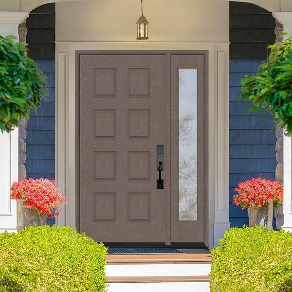 Regency 59 in. x 96 in. 8-Panel RHOS Ashwood Stain Mahogany Fiberglass Prehung Front Door with 14 in. Sidelite