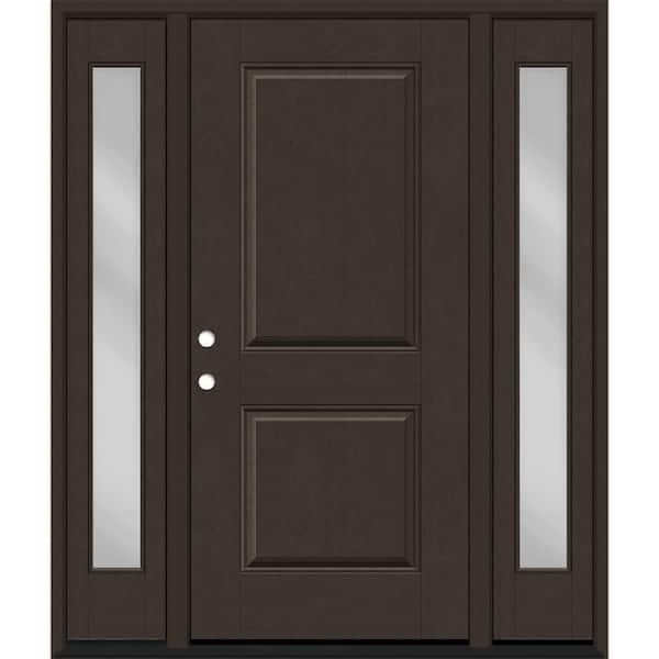 Regency 60 in. x 80 in. 2P Squaretop RHIS Hickory Stain Mahogany Fiberglass Prehung Front Door w/Clear 10 in. SLs 6-9/16
