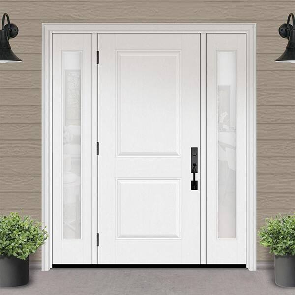 Regency 60 in. x 80 in. 2P Squaretop RHOS Unfinished White Mahogany Fiberglass Prehung Front Door w/Clear10in.SLs 6-9/16