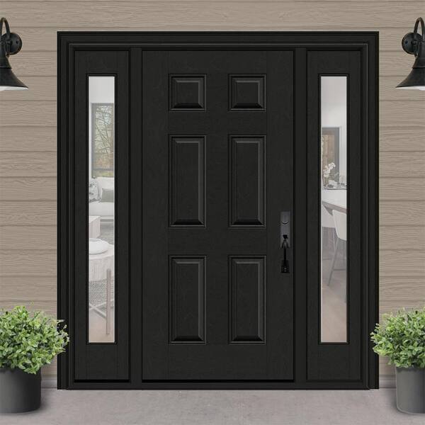 Regency 60 in. x 80 in. 6 Panel LHIS Onyx Stain Mahogany Fiberglass Prehung Front Door with Clear10 in. SLs 6-9/16