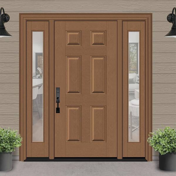 Regency 60 in. x 80 in. 6-Panel RHIS Autumn Wheat Stain Mahogany Fiberglass Prehung Front Door Clear 10 in. SLs 4-9/16