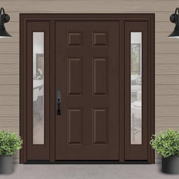 Regency 60 in. x 80 in. 6 Panel RHIS Chestnut Stain Mahogany Fiberglass Prehung Front Door with Clear10 in. SLs 6-9/16
