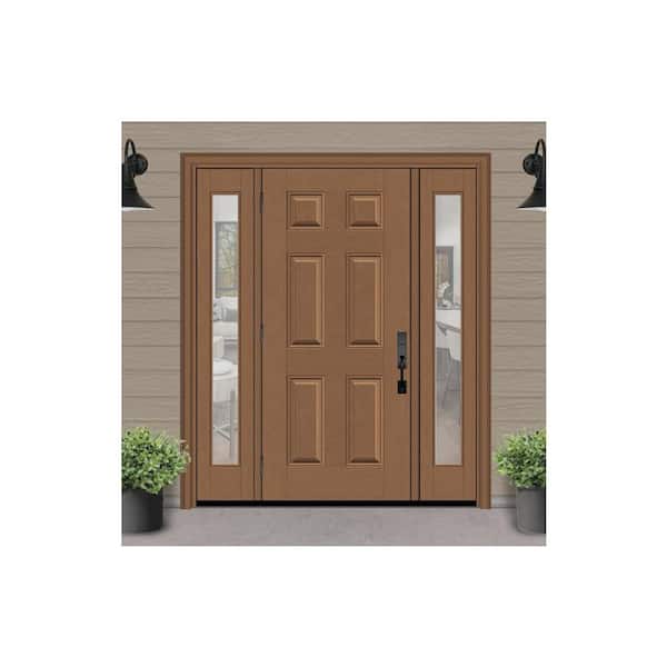 Regency 60 in. x 80 in. 6 Panel RHOS Autumn Wheat Stain Mahogany Fiberglass Prehung Front Door Clear10 in. SLs 6-9/16