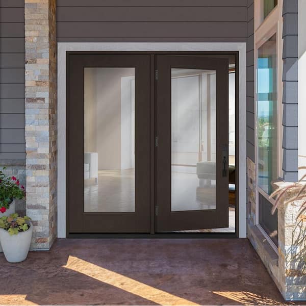 Regency 60 in. x 80 in. Full Lite Clear Glass Hickory LH Center-Hinged Stained Fiberglass Retro Patio Door with 6"Jamb