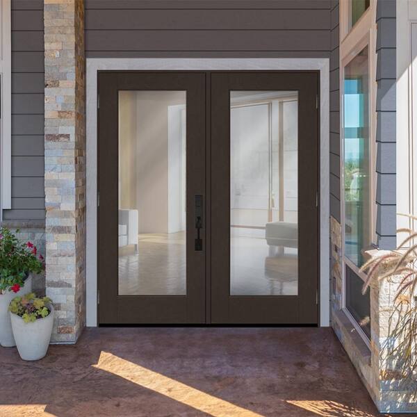 Regency 60 in. x 80 in. Full Lite Clear Glass Hickory RHOS Stained Fiberglass Retro Patio Door with 6 in. Jamb