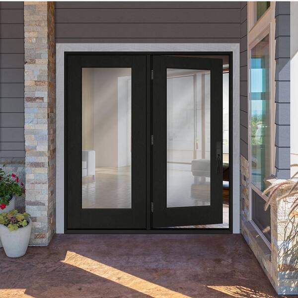 Regency 60 in. x 80 in. Full Lite Clear Glass Onyx LH Center-Hinged Stained Fiberglass Retro Patio Door with 6 in. Jamb