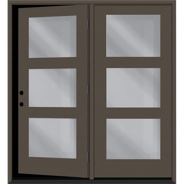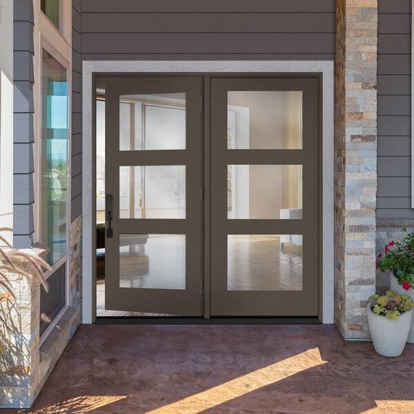 Regency 60 in. x 80 in. Modern 3L Equal Clear Glass Ashwood RH CenterHinged Stained Fiberglass Retro Patio Door w/4"Jamb