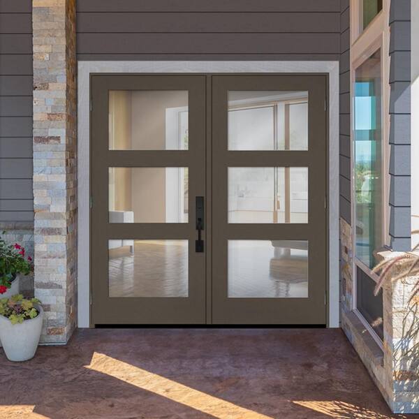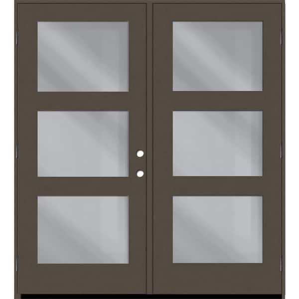 Regency 60 in. x 80 in. Modern 3L Equal Clear Glass Ashwood RHOS Stained Fiberglass Retro Patio Door with 4 in. Jamb