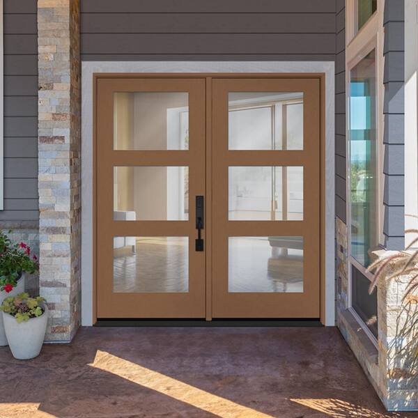 Regency 60 in. x 80 in. Modern 3L Equal Clear Glass Autumn Wheat LHIS Stained Fiberglass Retro Patio Door w/4 in. Jamb