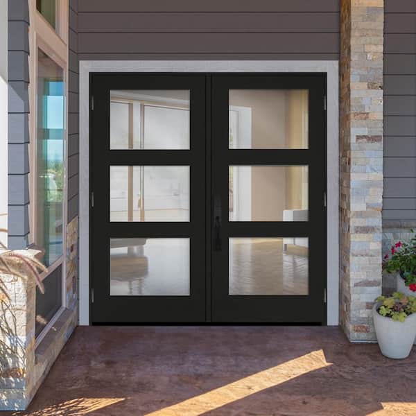 Regency 60 in. x 80 in. Modern 3L Equal Clear Glass Onyx LHOS Stained Fiberglass Retro Patio Door with 4 in. Jamb