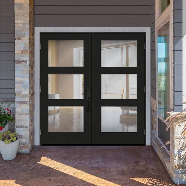 Regency 60 in. x 80 in. Modern 3L Equal Clear Glass Onyx RHOS Stained Fiberglass Retro Patio Door w/6"Jamb