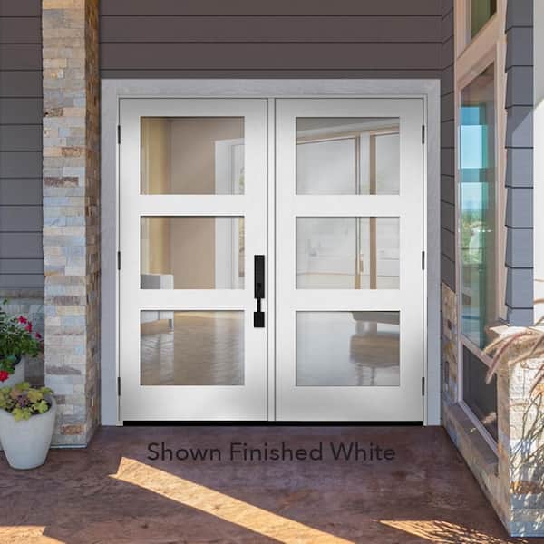 Regency 60 in. x 80 in. Modern 3L Equal Clear Glass RHOS Unfinished White Fiberglass Retro Patio Door with 4 in. Jamb