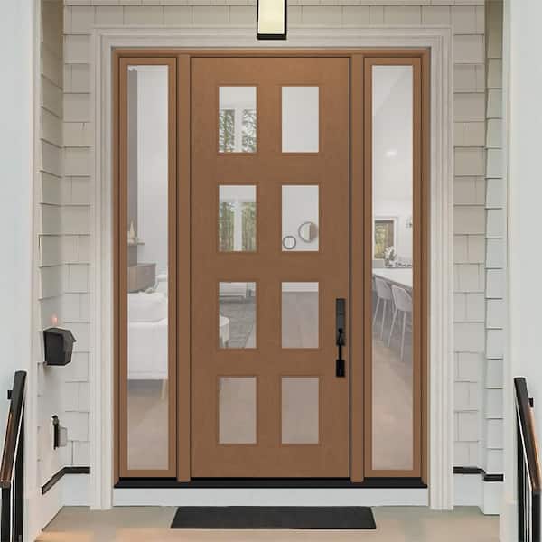 Regency 60 in. x 96 in. 8L Modern Clear Glass LHIS AutumnWh Stain Fiberglass Prehung Front Door w/Clear10in. SLs 4-9/16