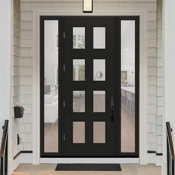 Regency 60 in. x 96 in. 8L Modern Clear Glass RHOS Onyx Stain Fiberglass Prehung Front Door w/Clear10in. SLs 6-9/16