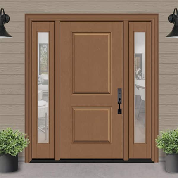 Regency 64 in. x 80 in. 2P Squaretop LHIS AutumnWheat Stain Mahogany Fiberglass Prehung Front Door w/Clr12in. SLs 6-9/16