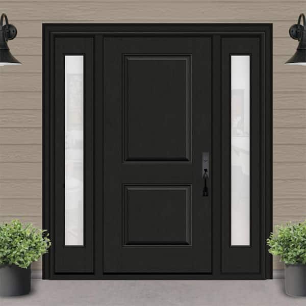 Regency 64 in. x 80 in. 2P Squaretop LHIS Onyx Stain Mahogany Fiberglass Prehung Front Door with Obscure12in. SLs 4-9/16