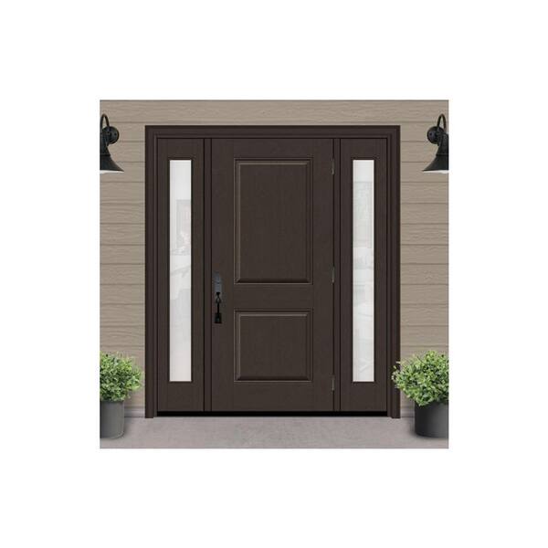 Regency 64 in. x 80 in. 2P Squaretop LHOS Hickory Stain Mahogany Fiberglass Prehung Front Door w/Obscure12in. SLs 6-9/16