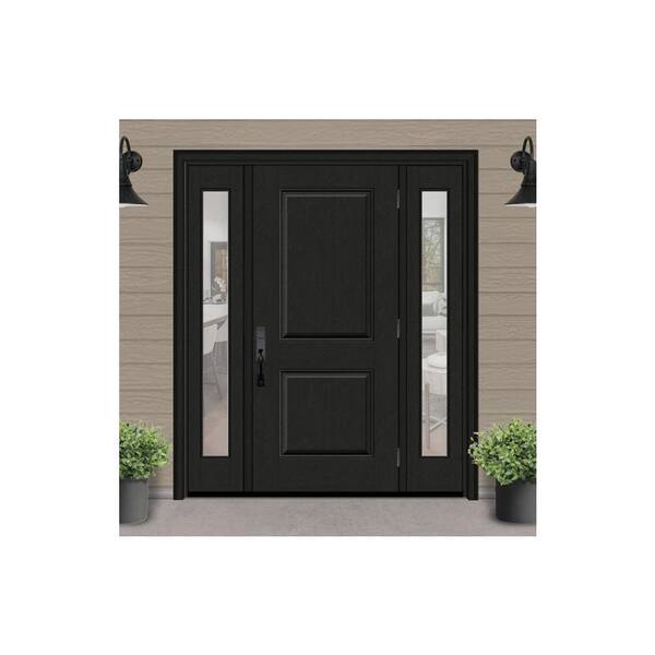 Regency 64 in. x 80 in. 2P Squaretop LHOS Onyx Stain Mahogany Fiberglass Prehung Front Door with Clear 12 in. SLs 4-9/16
