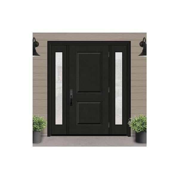 Regency 64 in. x 80 in. 2P Squaretop LHOS Onyx Stain Mahogany Fiberglass Prehung Front Door with Rain12 in. SLs 6-9/16