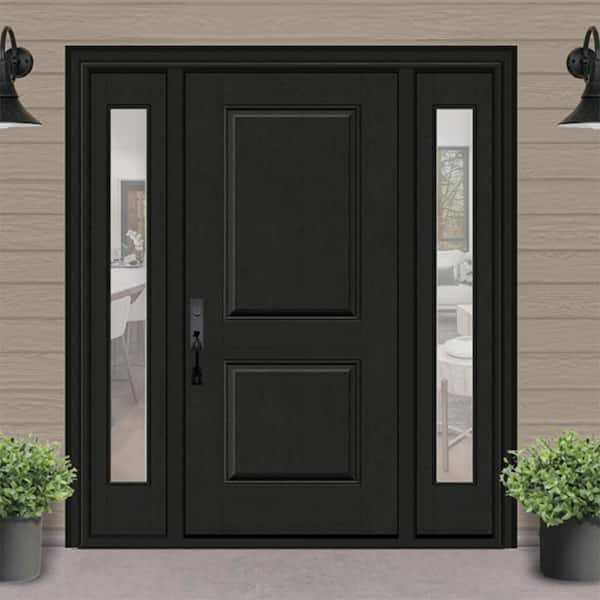 Regency 64 in. x 80 in. 2P Squaretop RHIS Onyx Stain Mahogany Fiberglass Prehung Front Door with Clear 12 in. SLs 6-9/16