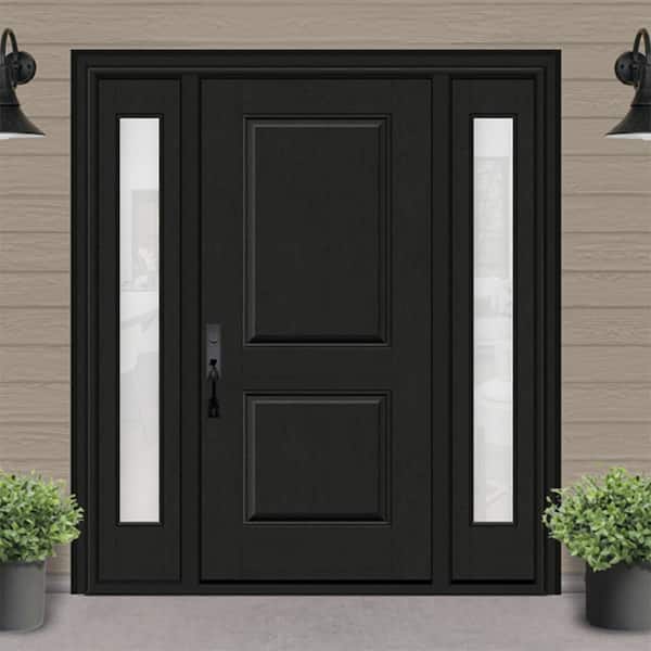 Regency 64 in. x 80 in. 2P Squaretop RHIS Onyx Stain Mahogany Fiberglass Prehung Front Door with Obscure12in. SLs 4-9/16