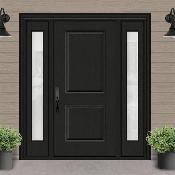 Regency 64 in. x 80 in. 2P Squaretop RHIS Onyx Stain Mahogany Fiberglass Prehung Front Door with Obscure12in. SLs 6-9/16