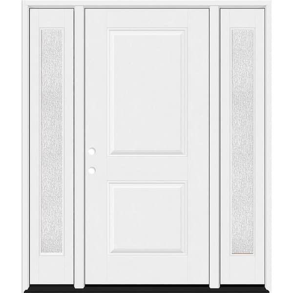 Regency 64 in. x 80 in. 2P Squaretop RHIS Unfinished White Mahogany Fiberglass Prehung Front Door w/Rain12in. SLs 4-9/16