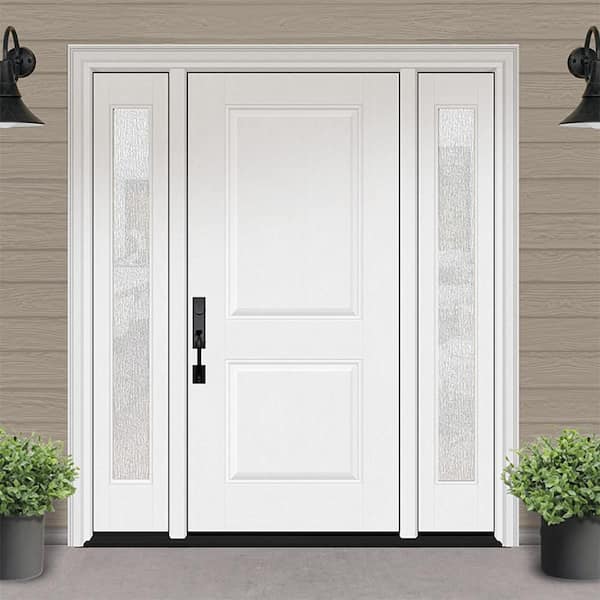 Regency 64 in. x 80 in. 2P Squaretop RHIS Unfinished White Mahogany Fiberglass Prehung Front Door w/Rain12in. SLs 6-9/16