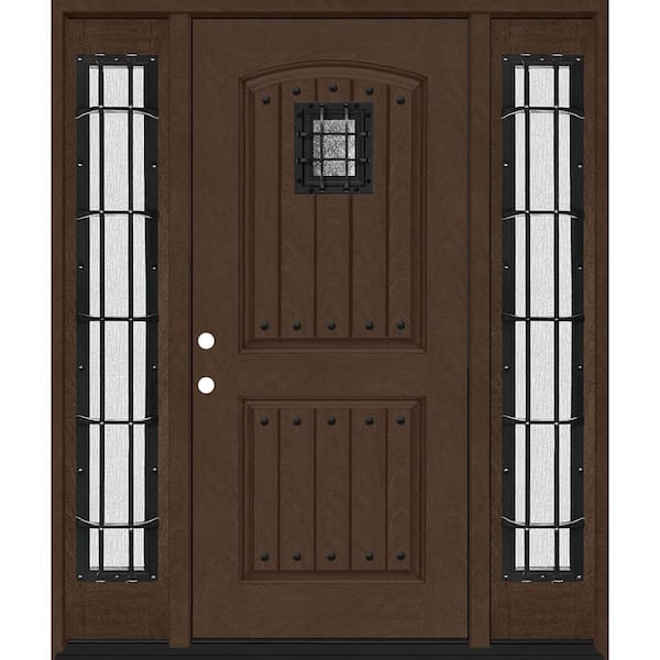 Regency 64 in. x 80 in. 2Panel Plank Cavalier Speakeasy RHIS Hickory Fiberglass Prehung Front Door w/Cav Dbl 12in.SL