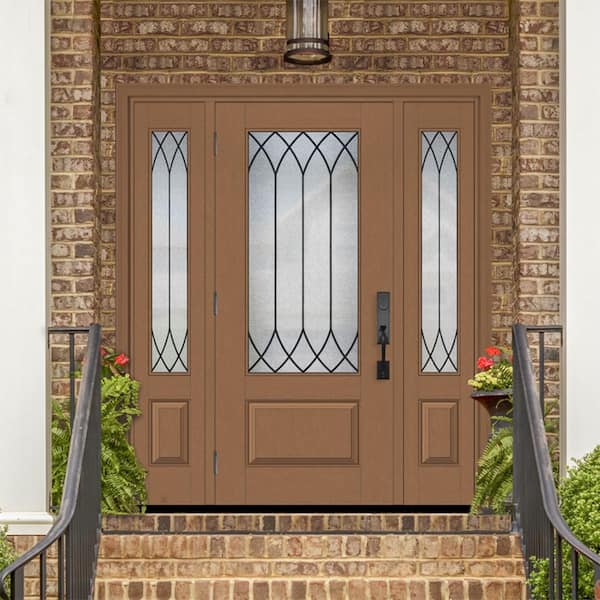 Regency 64 in. x 80 in. 3/4-Lite Decorative Glass RHOS Autum Wheat Mahogany Fiberglass Prehung Front Door w/Db 12 in. SL