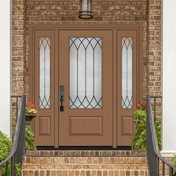 Regency 64 in. x 80 in. 3/4L Decorative Glass RHIS Unfinished Mahogany Fiberglass Prehung Front Door w/Dbl 12 in. SL