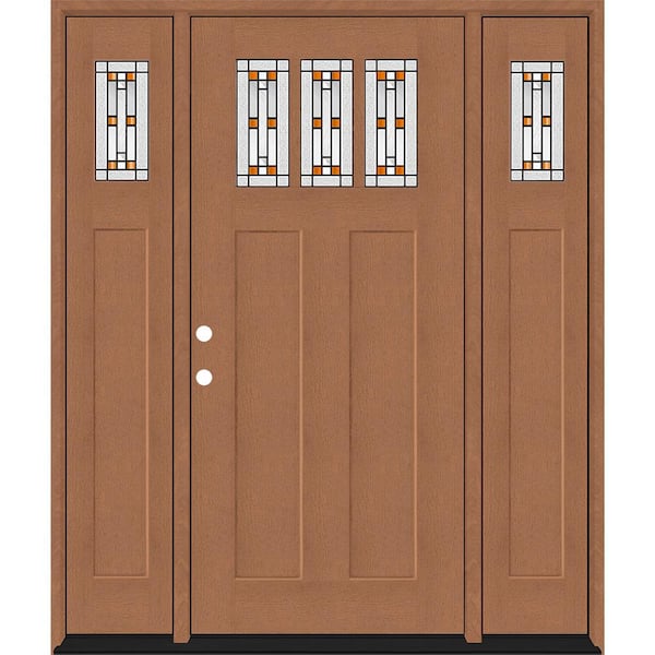 Regency 64 in. x 80 in. 3Lite Amberton Deco Glass RHIS AutumnWheat Stain Fir Fiberglass Prehung Front Door w/Dbl 12in.SL