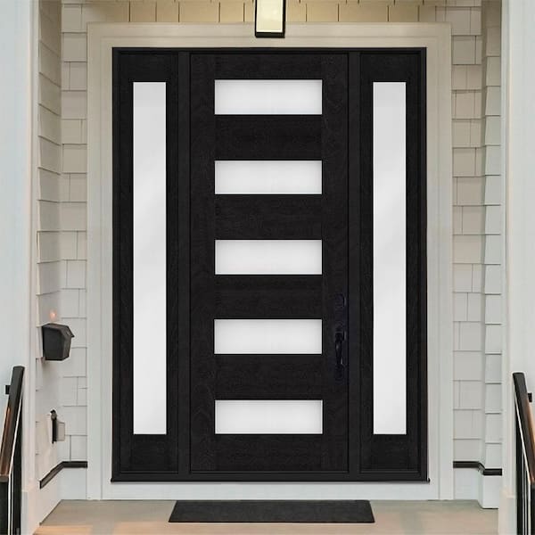 Regency 64 in. x 80 in. 5L Modern Clear Glass RHOS Onyx Stain Mahogany Fiberglass Prehung Front Door w/Dbl 12 in. SL