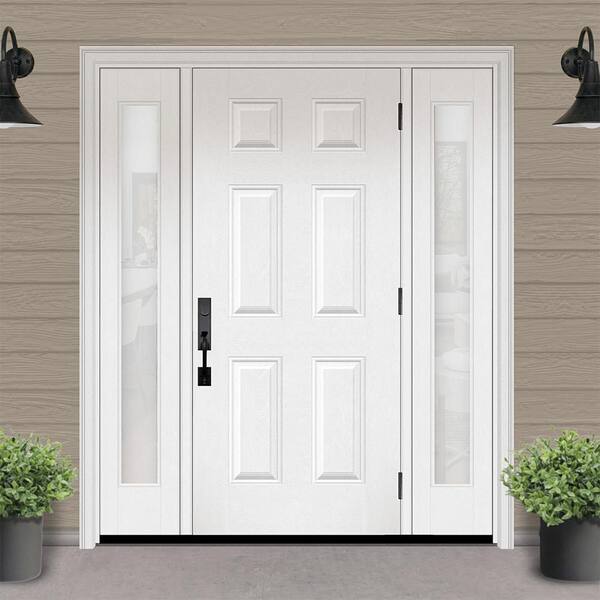 Regency 64 in. x 80 in. 6 Panel LHOS Unfinished White Mahogany Fiberglass Prehung Front Door Obscure12 in. SLs 6-9/16