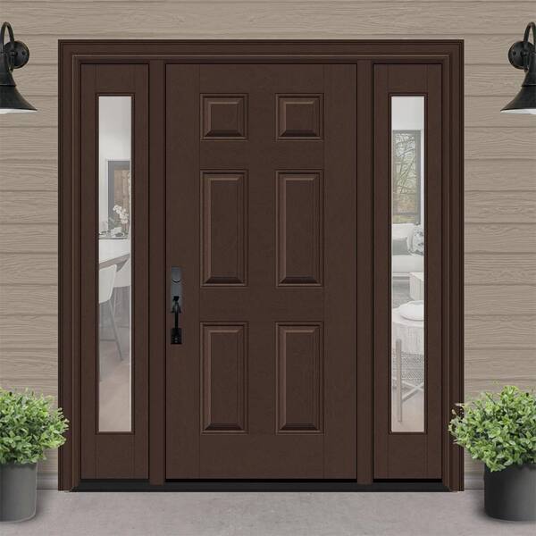 Regency 64 in. x 80 in. 6 Panel RHIS Chestnut Stain Mahogany Fiberglass Prehung Front Door with Clear 12 in. SLs 6-9/16