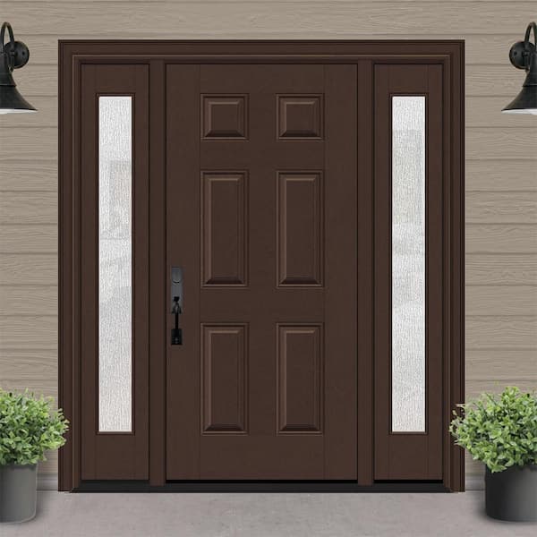 Regency 64 in. x 80 in. 6 Panel RHIS Chestnut Stain Mahogany Fiberglass Prehung Front Door with Rain12 in. SLs 4-9/16
