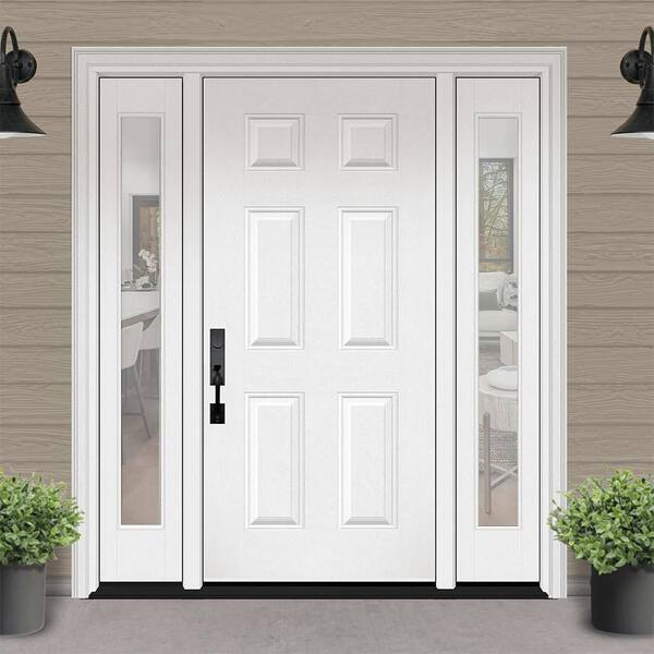 Regency 64 in. x 80 in. 6 Panel RHIS Unfinished White Mahogany Fiberglass Prehung Front Door with Clear12 in. SLs 6-9/16