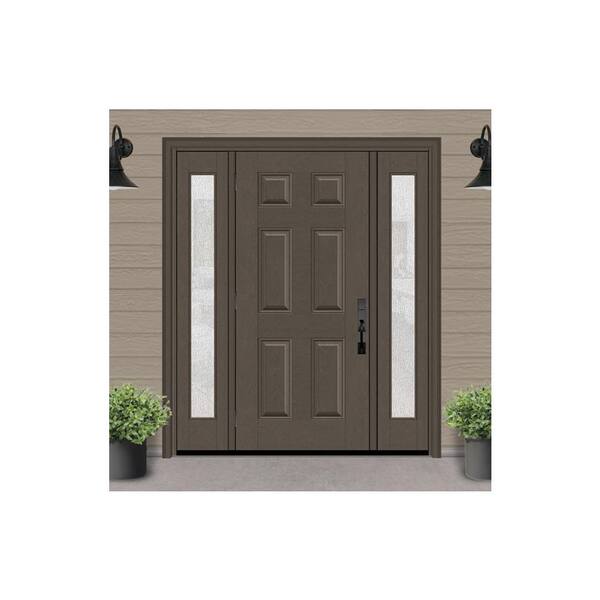 Regency 64 in. x 80 in. 6 Panel RHOS Ashwood Stain Mahogany Fiberglass Prehung Front Door with Rain 12 in. SLs 4-9/16