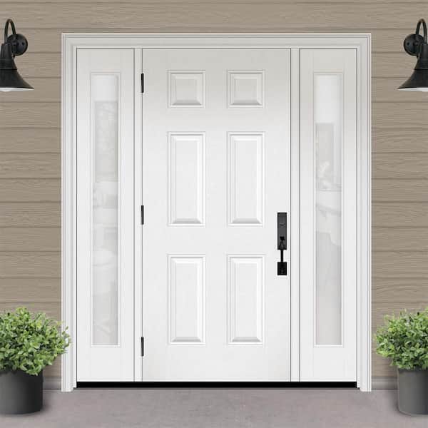 Regency 64 in. x 80 in. 6 Panel RHOS Unfinished White Mahogany Fiberglass Prehung Front Door Obscure 12 in. SLs 4-9/16