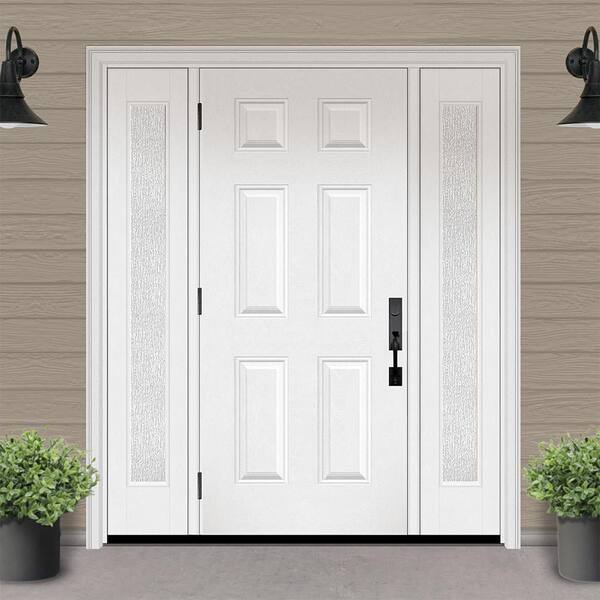 Regency 64 in. x 80 in. 6-Panel RHOS Unfinished White Mahogany Fiberglass Prehung Front Door with Rain 12 in. SLs 6-9/16