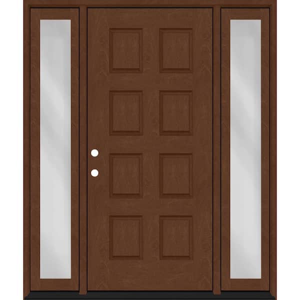 Regency 64 in. x 80 in. 8-Panel RHIS Chestnut Stain Mahogany Fiberglass Prehung Front Door w/Dbl 12in.Sidelites