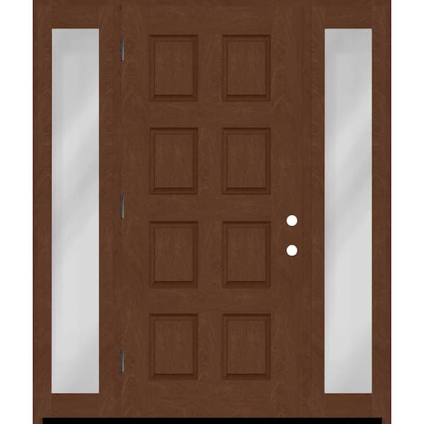 Regency 64 in. x 80 in. 8-Panel RHOS Chestnut Stain Mahogany Fiberglass Prehung Front Door w/Dbl 12in.Sidelites