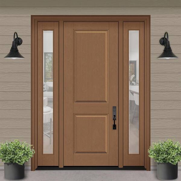 Regency 64 in. x 96 in. 2P Squaretop LHIS AutumnWh Stain Mahogany Fiberglass Prehung Front Door w/Clear 12in. SLs 4-9/16