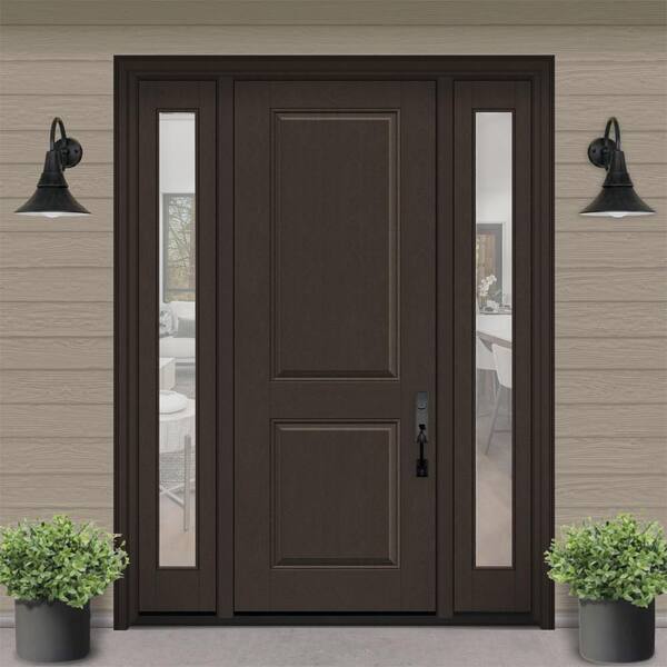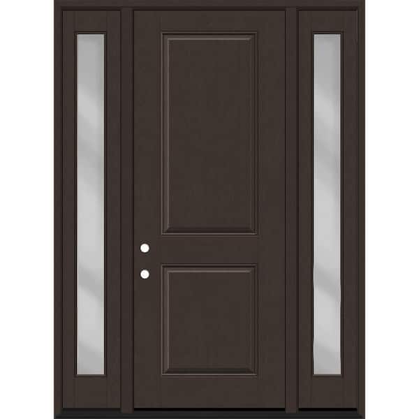 Regency 64 in. x 96 in. 2P Squaretop LHIS Hickory Stain Mahogany Fiberglass Prehung Front Door w/Clear 12 in. SLs 4-9/16